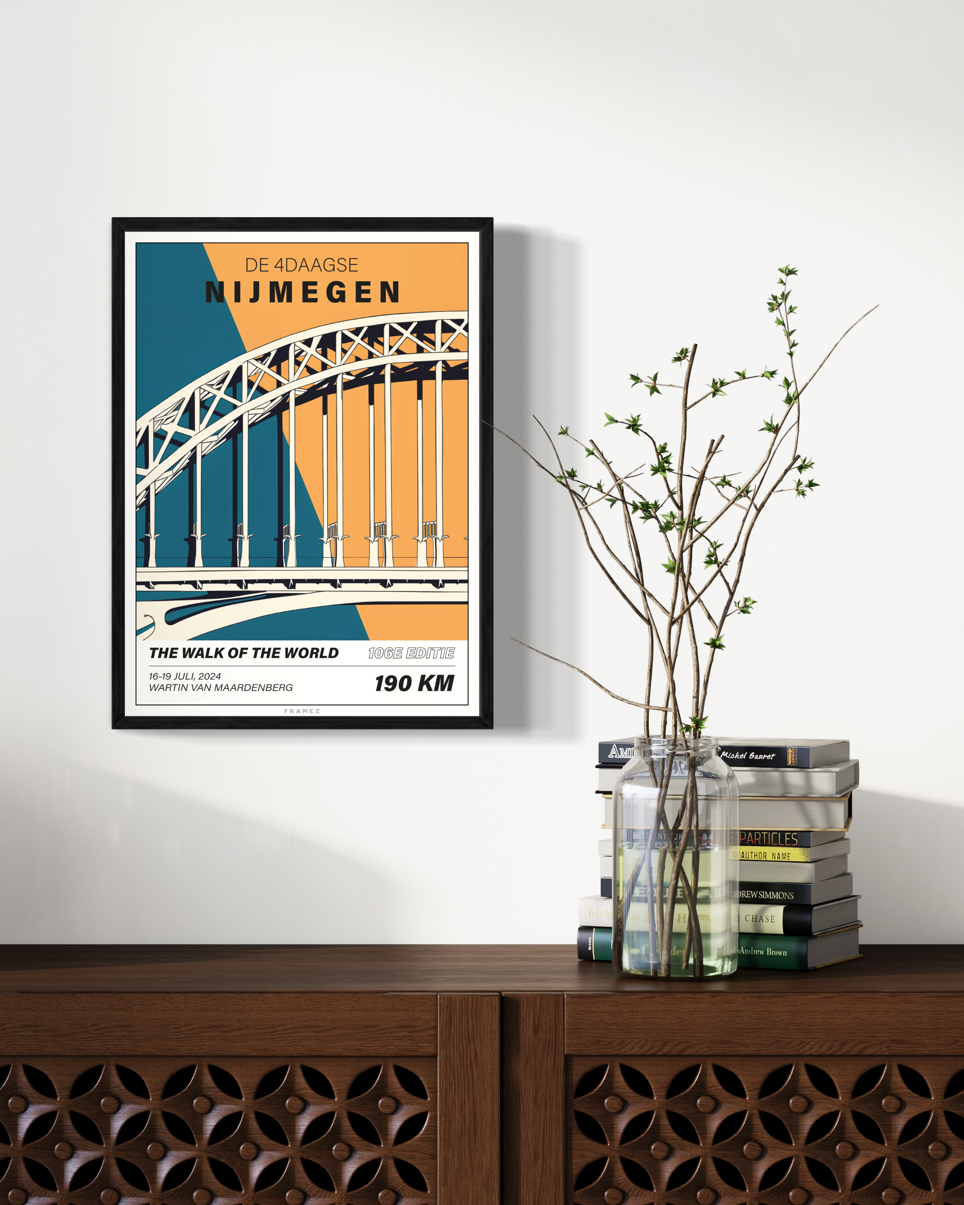 Onze posters worden vervaardigd met hoogwaardige digitale toners op 250 gram Reliëf High White papier, wat een ongeëvenaarde kwaliteit en duurzaamheid garandeert. Optioneel kunnen ze worden geleverd met een houten lijst met kunststof raam, waardoor je een prachtige presentatie krijgt die direct klaar is om op te hangen. Met deze combinatie van premium printtechnologie en materiaalkeuze bieden we een product dat zowel esthetisch als langdurig van aard is, perfect voor het vastleggen van de pracht van de Nijmeegse 4Daagse 2024.